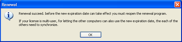 Click Yes, the program will automatically reopen the renewed software for letting the renewal date can take effect. If click No, the renewal date will take effect when you open the renewed software next time.