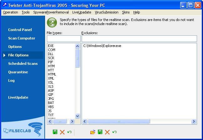 This can define the files that do not want to be scanned by Twister Anti-TrojanVirus. For example, there have some files are "Low-Risk Program" or "Questionable Win32 App",