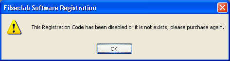 Occurs this problem, maybe because this registration code has been disabled. The registration code that lawless redistributed and for testing may be disabled. Maybe it is an invalid registration code, please purchase registration code from formal channels.