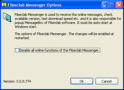 Enable the option of "Disable all online functions of Filseclab Messenger", and click OK button to save it.