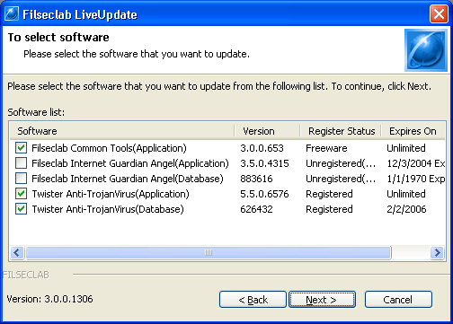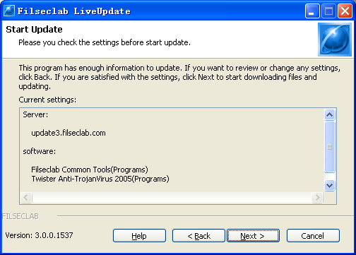 1. Open Filseclab LiveUpdate program from Start -> Programs -> Filseclab -> Filseclab LiveUpdate. the frame as following.