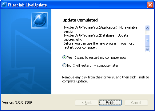 7. If the restart computer is required after update, the following frame will be shown.