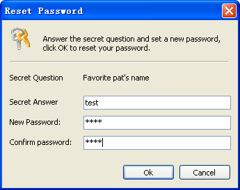 After the secret question is set, you may reset password if you forgot it. Answer the secret question and click Ok to reset password.