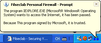 A balloon message will be popped up to prompt you when there have some programs were automatically trusted. For example, the Windows Internet Explorer signed by Microsoft, it will be automatically trusted as following: