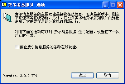 选中“停止费尔消息服务的各种在线功能”,按“确定”即可。