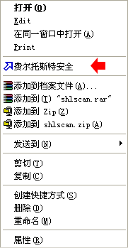 费尔托斯特安全提供Windows外壳扩展(Shell Extension)功能,使用它可以非常方便对某个目标文件进行扫描。 比如,在“我的电脑”中,当您打算扫描某个文件夹或文件时就可以直接选中它们,然后点击鼠标右键, 在弹出的菜单中会出现“费尔托斯特安全”的命令,点击它就会调用费尔托斯特安全对所选文件进行扫描。