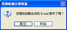 在程式自動生成 E-mail 後,會彈出如下提示框: