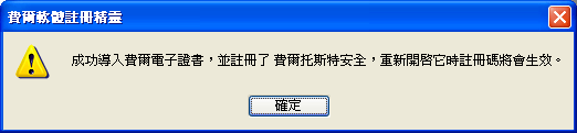 如果導入失敗,則會彈出相應的提示。比如可能出現的錯誤有:無效的費爾電子證書;此證書不適用與本台電腦等。