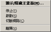 系統通知區域圖示和它的彈出菜單