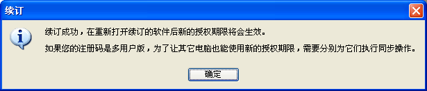输入续订码后,按“续订”按钮,开始续订。根据续订的成功与否,会出现类似下面的各种提示。
