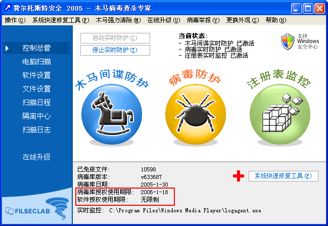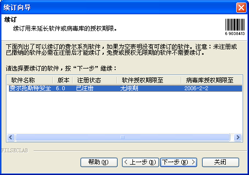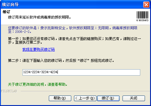 费尔托斯特安全在正式注册后一般都有一定的授权有效期限,这个期限的长短会根据您选购的类型和 价格来决定。比如如果您购买的是一年授权期限,那么您只可以使用一年,在此期限到来之前可以正常的 使用、升级软件和病毒库,但当超过此期限后就无法继续更新它们了,您只能仍然使用原来的版本。如果希 望继续能够更新就要通过续订的方式来延长您的授权期限,或者称作是为服务续费。这个过程很类似于为移动电话充值或储值。