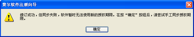 出现此情况表示续订后新的授权期限已经更新到中央服务器,但还没有成功的下载到您的电脑中,这时您可以按“确定”,程序会自动切换到 同步授权期限 的画面,然后您再手动尝试同步一下授权期限一般即可解决。
