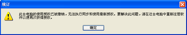 此台电脑的注册已被撤销,不能同步新的授权期限