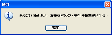 A. 同步授權期限成功,而且同步的軟體正在執行,會彈出如下的提示框。