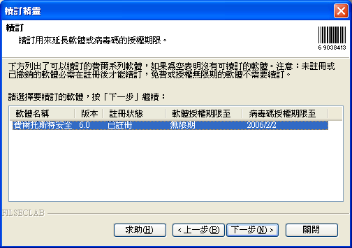 3、選擇要續訂的軟體後,按「下一步」,將出現以下畫面: